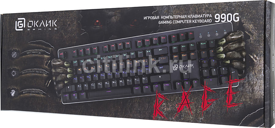 Клавиатура Oklick 990G Rage механическая черный USB Multimedia for gamer LED