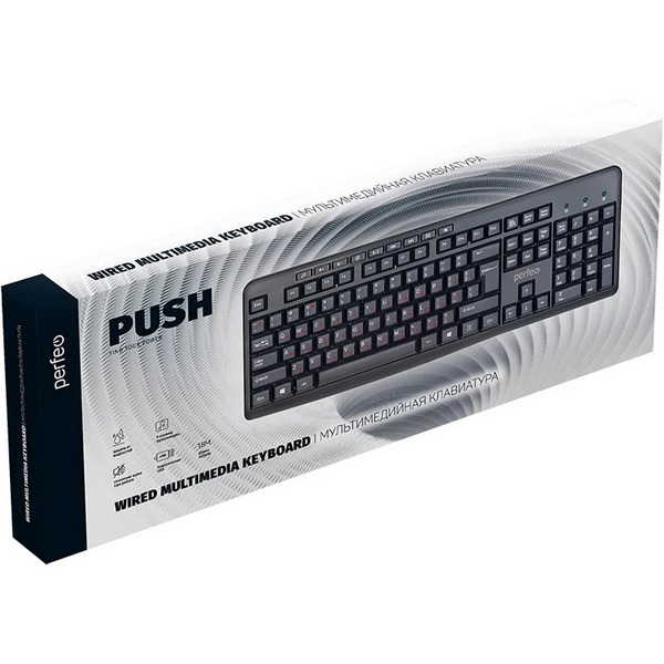 Клавиатура Perfeo Push PF-A4796 Multimedia, USB, чёрн