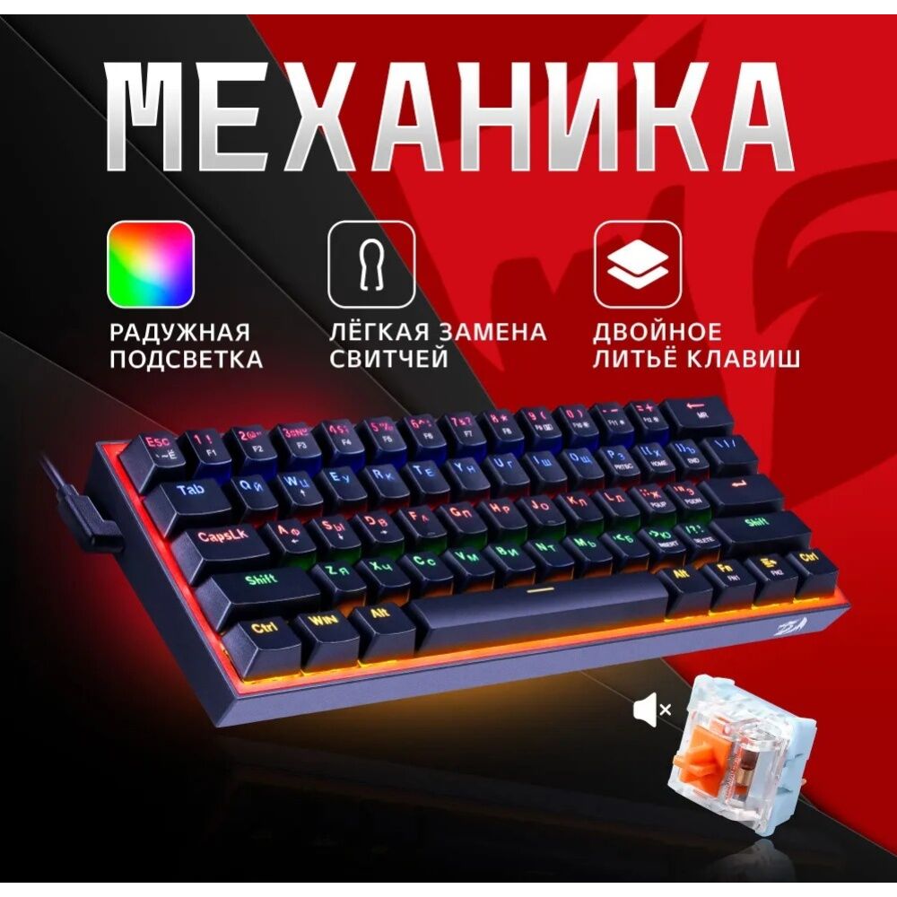 Клавиатура REDRAGON Fizz RU 72595 Rainbow, melt-gold свитчи