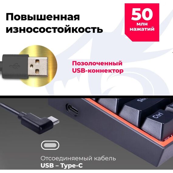 Механические переключатели REDRAGON RED славятся тихим ходом клавиш, что практически исключает шум при наборе текста или играх. Технология Hot Swap облегчает замену переключателей по мере необходимости.