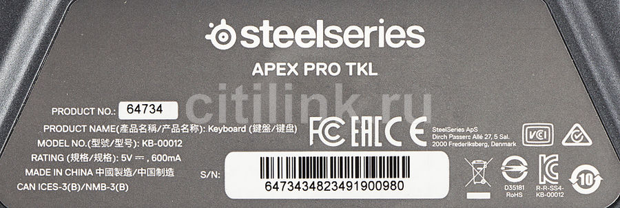 Клавиатура Steelseries Apex Pro TKL RU черный