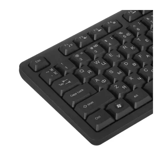 Клавиатура+мышь A4Tech KK-3330 оформлены в классическом стиле и оптимизированы для повседневной работы с различными приложениями. В наборе поставляются полноразмерная клавиатура со 104 клавишами на основе мембранного механизма и оптическая светодиодная мышь с разрешением 1200 dpi, которые обеспечивают высокую точность управления и низкий уровень шума. На основании корпуса клавиатуры предусмотрены выдвижные ножки для регулировки высоты. Подключение клавиатуры и мыши из набора A4Tech KK-3330 осуществляется по проводному интерфейсу USB.