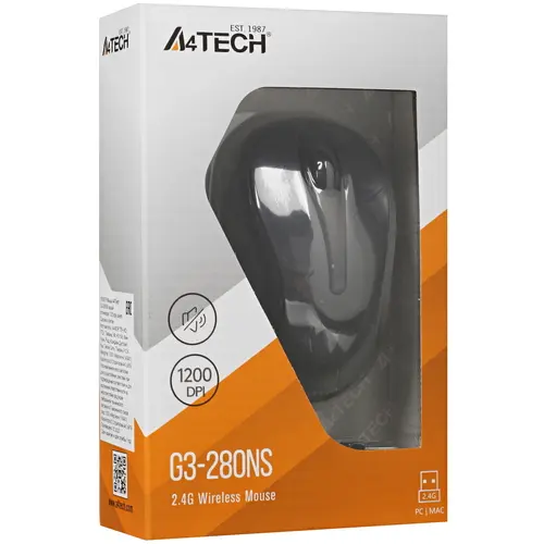 Мышь беспроводная A4Tech G3-280NS выполнена из пластика с матовым покрытием, которое не накапливает загрязнения. Форма удобна для управления аксессуаром правой и левой ладонью. Модель оснащена бесшумными кнопками, не издающими характерного клика во время нажатия.