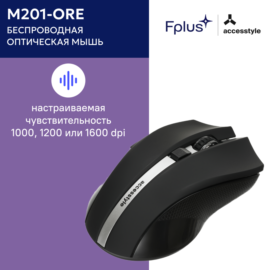Accesstyle М201-ORE — идеальная беспроводная мышь для работы и развлечений! Мышь М201-ORE изготовлена из высококачественного ABS-пластика, что гарантирует ее прочность и долговечность. Оптический сенсор обеспечивает точное и плавное управление курсором, а три доступных разрешения - 1000, 1200 и 1600 DPI - позволяют подобрать наиболее подходящий режим для различных задач. М201-ORE оснащена шестью кнопками, которые обеспечивают быстрый и удобный доступ к основным функциям. Беспроводное подключение обеспечивает свободу движения и отсутствие проводов на рабочем месте. Радиус действия мыши составляет 10 метров, что позволяет использовать ее на большом расстоянии от компьютера. Данная модель доступна в нескольких цветах, поэтому вы сможете выбрать наиболее подходящий вариант для своего рабочего места. Компьютерная мышь Accesstyle М201-ORE прекрасно подойдет как для работы, так и для игр. Она станет отличным дополнением к вашему компьютеру и позволит повысить эффективность работы.