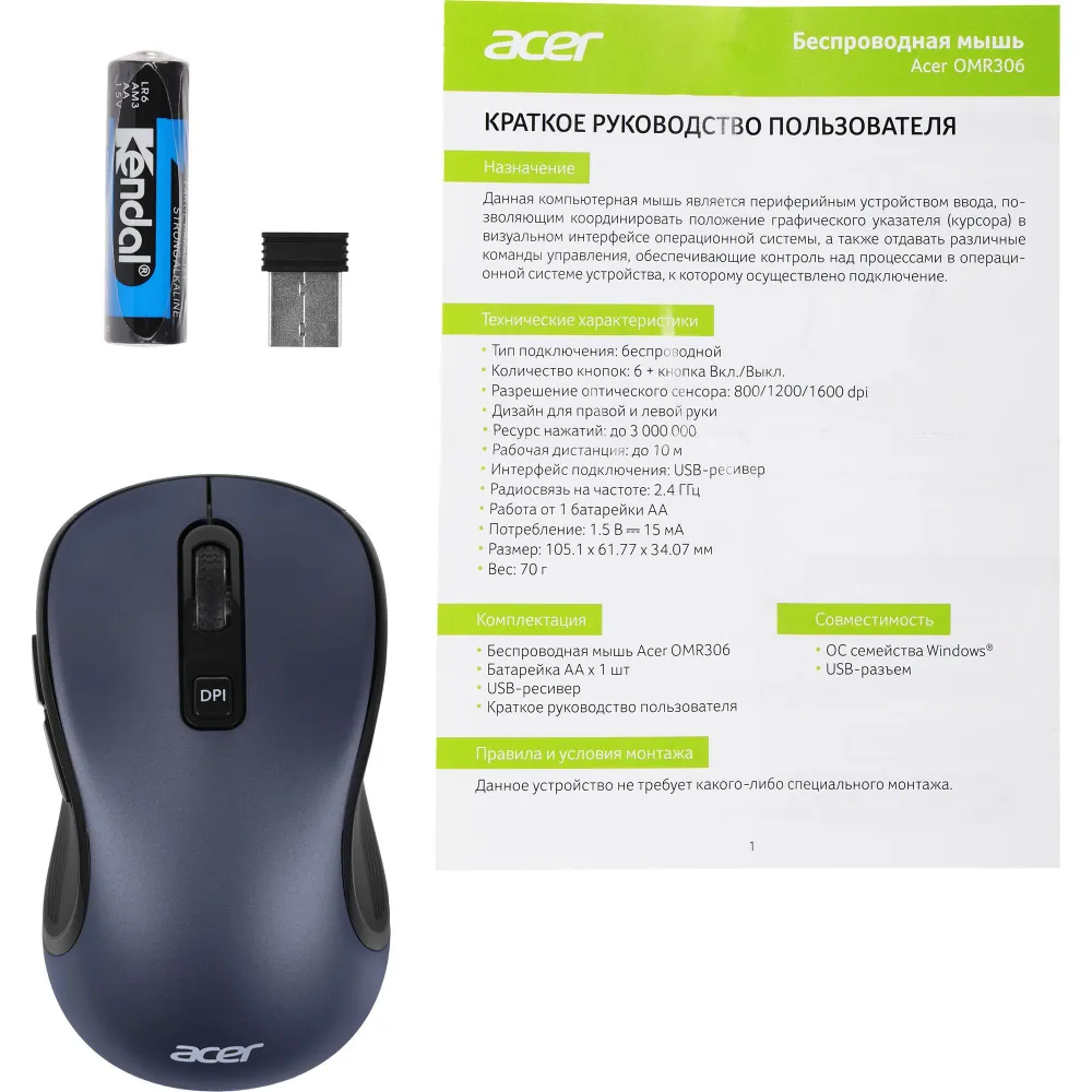 Мышь беспроводная Acer OMR306 (ZL.MCECC.021) черный/серый (1600dpi) USB (6but)