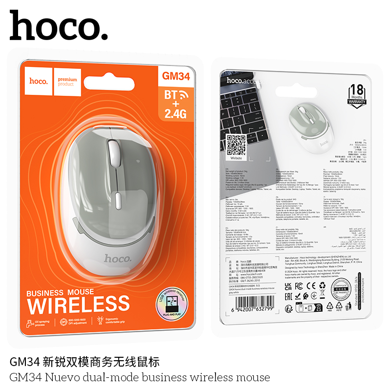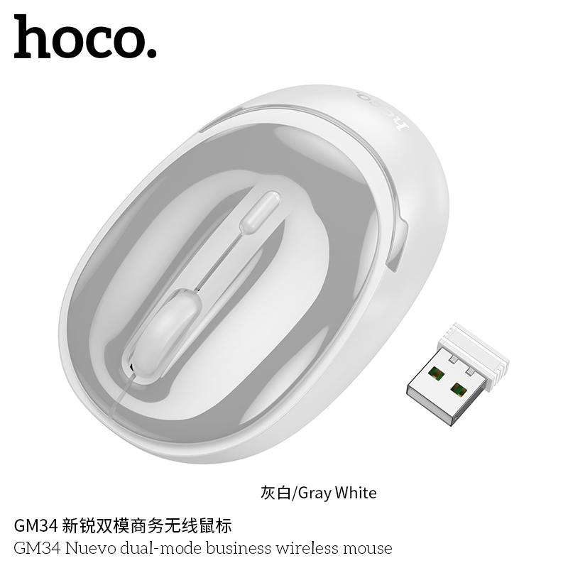 Мышь беспроводная HOCO GM34 Nuevo dual-mode business wireless mouse серо белый