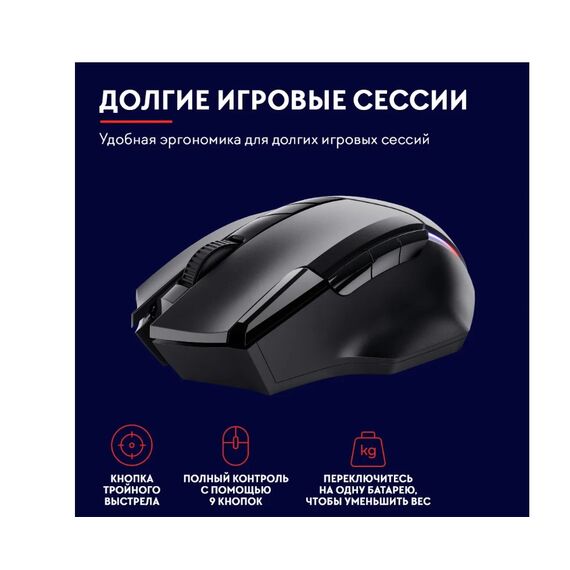 Беспроводная игровая мышь с радужной динамической подсветкой и 9 клавишами