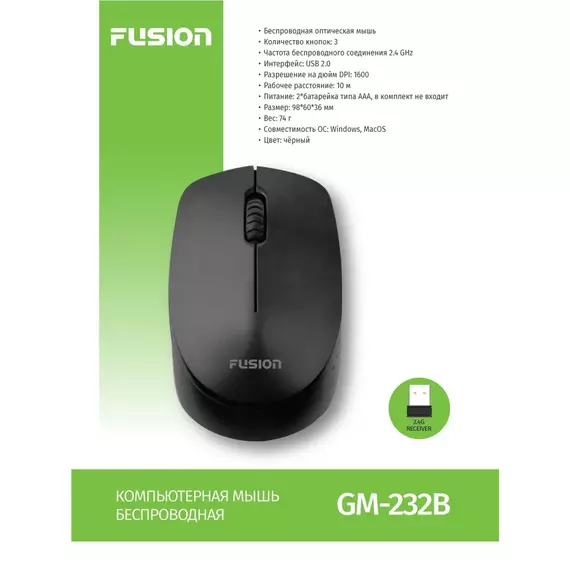 Функциональную беспроводная оптическая мышь Fusion GM-232B.