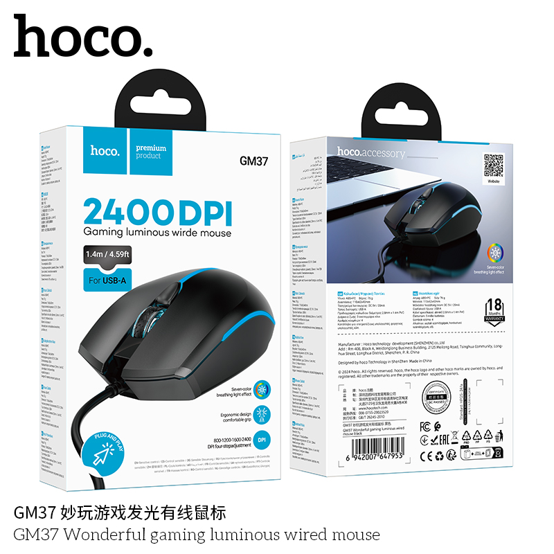 Мышь HOCO GM37 Wonderful игровая с подсветкой черный