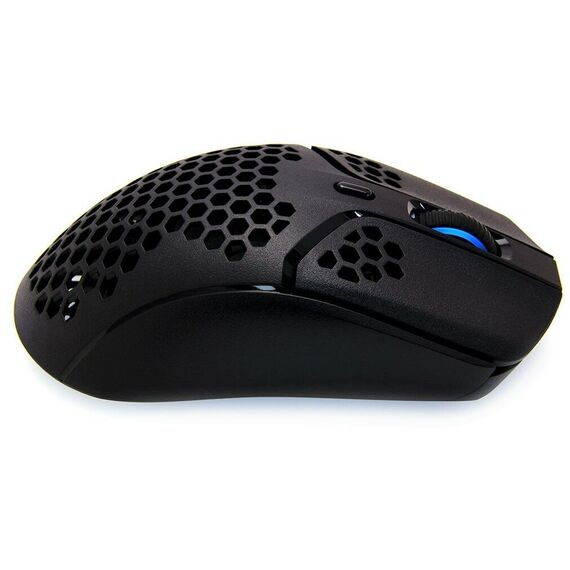 Это важная особенность HyperX Pulsefire Haste Wireless, которая делает устройство легче и помогает лучше управлять мышкой. В ее верхней части и на основных кнопках довольно много отверстий в форме шестигранников. Они не только снижают вес девайса, но и улучшают движение воздуха, чтобы вы могли спокойно играть и не отвлекаться на всякие мелочи.