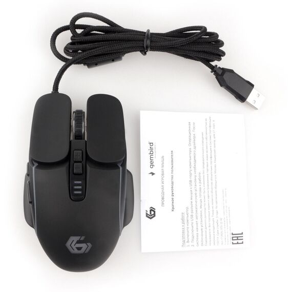 Мышь игровая Gembird MG-820, USB, 3200 DPI, 6кн, подсветка, 1,8 м. кабель в тк.опл.