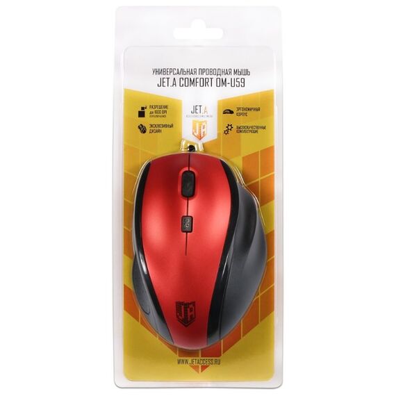 Мышь Jet.A Comfort OM-U59 Red (1000/1600dpi, 3 кнопки, USB)