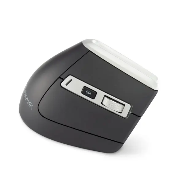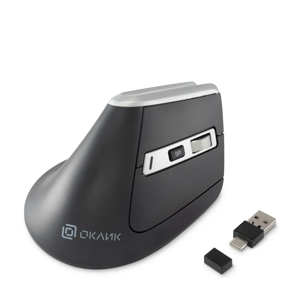 Удобная вертикальная эргономичная беспроводная мышь. Металлическое колесо, тефлоновые ножки, поддержка трех устройств, бесшумный клик. Универсальный ресивер USB A/C, поддержка Bluetooth. Кнопка вкл/выкл, кнопка переключения между устройствами на нижней поверхности мышки.