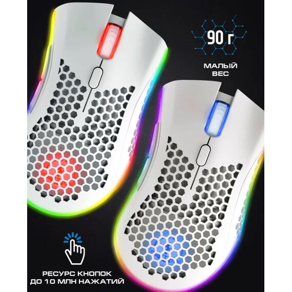 Мышь Panteon PS77 W белая (Pixart 3325 с микроконтроллером, подсветка LED) (беспроводной 2.4G + проводной режим)