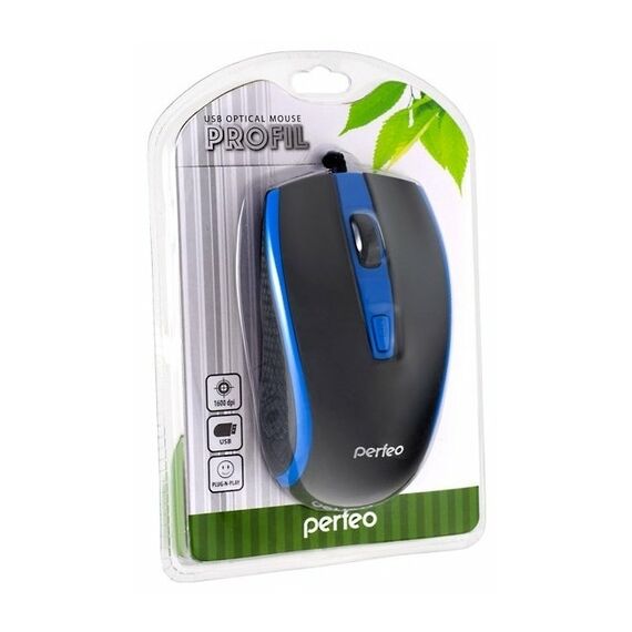 Мышь Perfeo Profil Black/Blue, 4 кн, 800-1600 dpi, USB (PF-383-OP-B/BL)