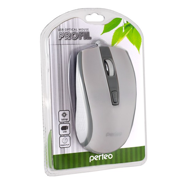 Мышь Perfeo Profil White/Gray, 4 кн, 800-1600 dpi, USB (PF-383-OP-W/GR)