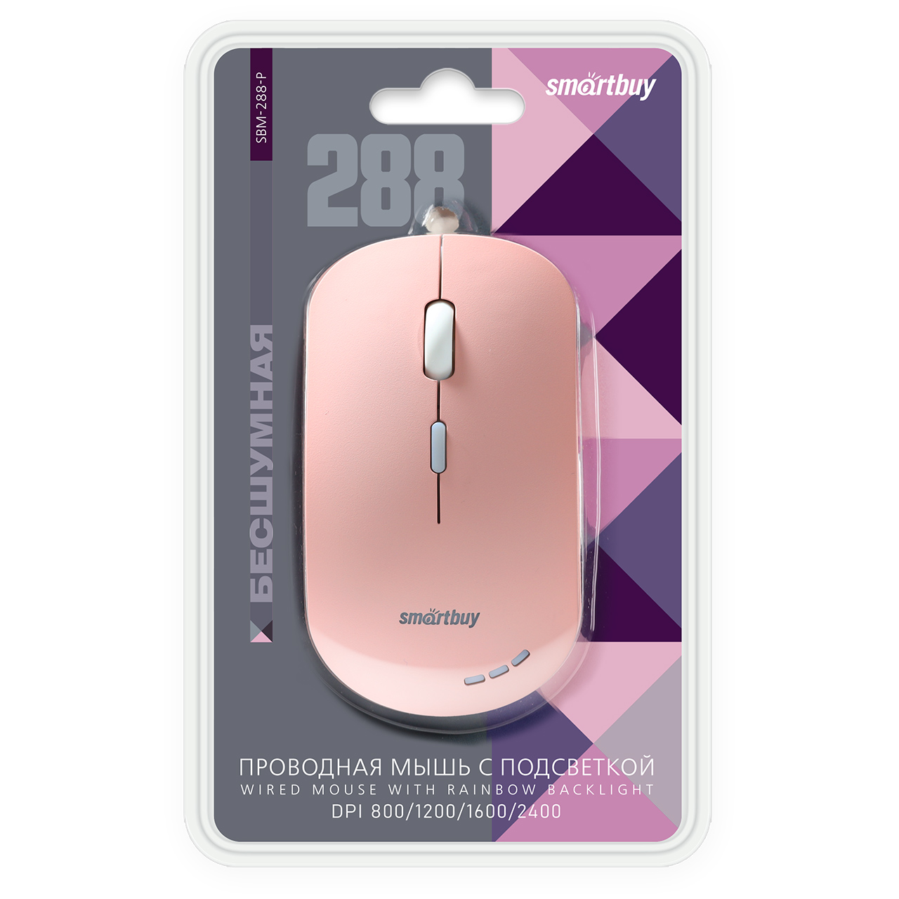 Мышь Smartbuy SBM-288-P с бесшумными кнопками! Гарантирует бесценный комфорт как для пользователя, так и для его окружения. Трендовый дизайн. Нестираемое приятное на ощупь UV-покрытие, ненавязчивая подсветка, прорезиненное колесико, переключаемая скорость курсора и оптимальный, удобный размер. Готовый хит для дома и офиса. Эргономичный дизайн и удобный захват. Нестираемое приятное на ощупь UV-покрытие,можно использовать как левой, так и правой рукой.
