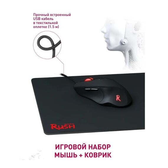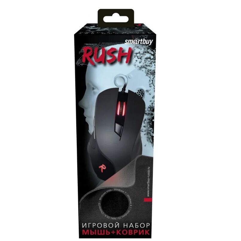 Игровой набор мышь + коврик Smartbuy Rush SBM-730G-K это отличное решение при выборе сразу двух аксессуаров. Мышь наделена эргономичной формой, которая подходит для большинства размера рук. Элегантная 4-х цветная подсветка (красный, синий, зелёный, фиолетовый) имеет мягкое свечение. Разрешения оптического сенсора хватает для комфортной и уверенно игры - всего 4 уровня DPI на выбор 800/1200/2400/3200. Внизу расположены площадки для оптимального, гладкого скольжения практически на любой поверхности. Игровой коврик имеет нескользящую каучуковую основу, которая надёжно цепляется за покрытие. Тканевая поверхность игрового коврика гладкая, износоустойчивая.