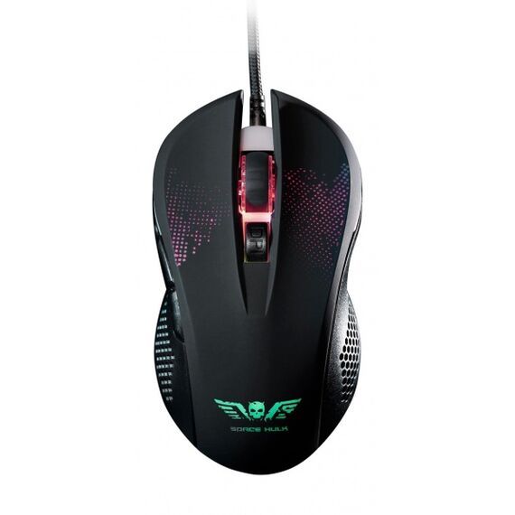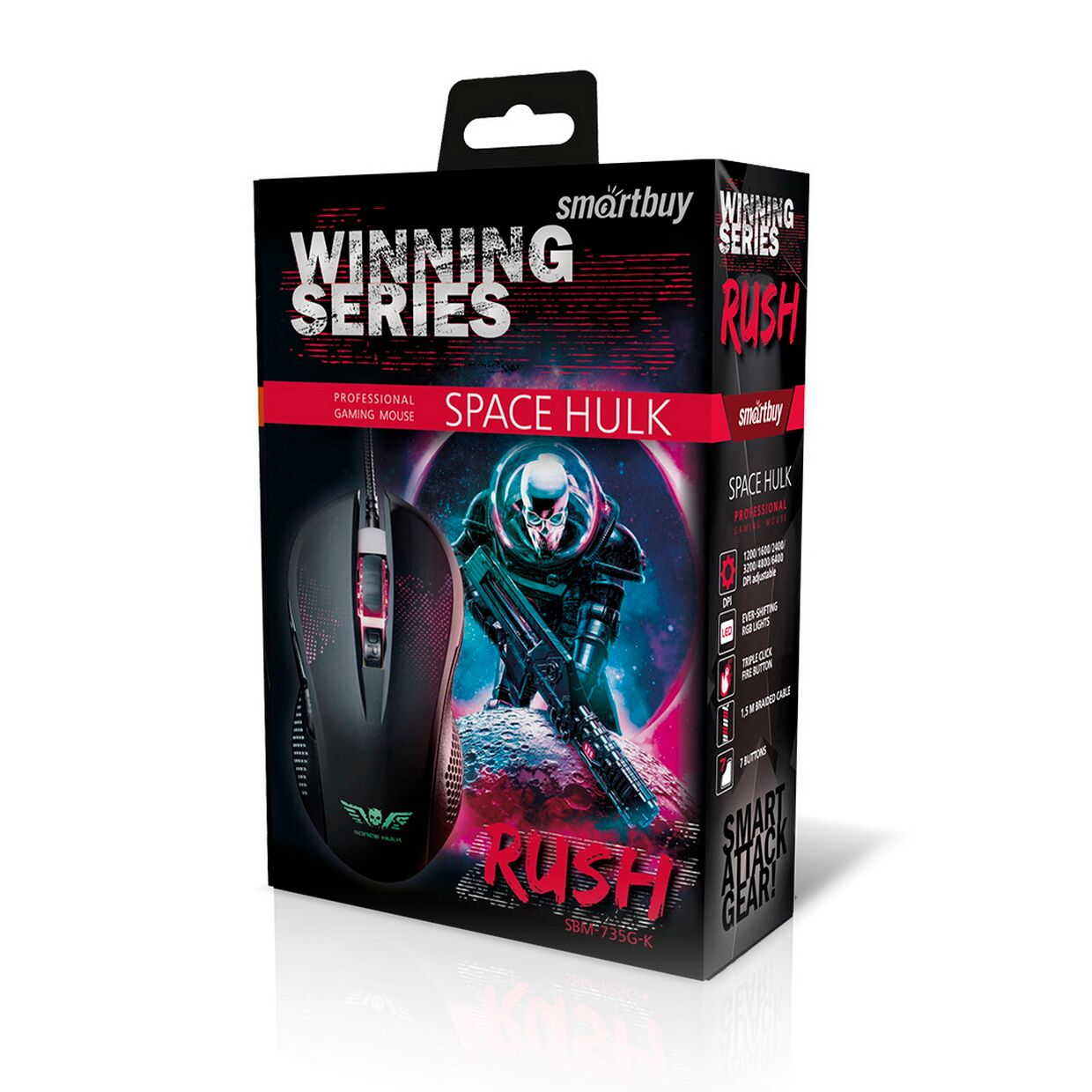 Трепещите! Технологии достигли космического уровня! Эргономичные формы проводной игровой мыши Smartbuy Rush Space Hulk оставляют кисть вне напряжения. Кнопка тройного клика позволяет вести прицельную борьбу в напряженных схватках. 7 кнопок управления, включая боковые и кнопку тройного клика. «Подключи и играй», драйвера не требуются. Износостойкое покрытие Soft-touch. Оптический сенсор Sunplus 199 c широким разрешением: 1200/1600/2400/3200/4800/6400 DPI. Многоцветная, переливающаяся RGB подсветка. Прочный USB кабель в текстильной оплетке.