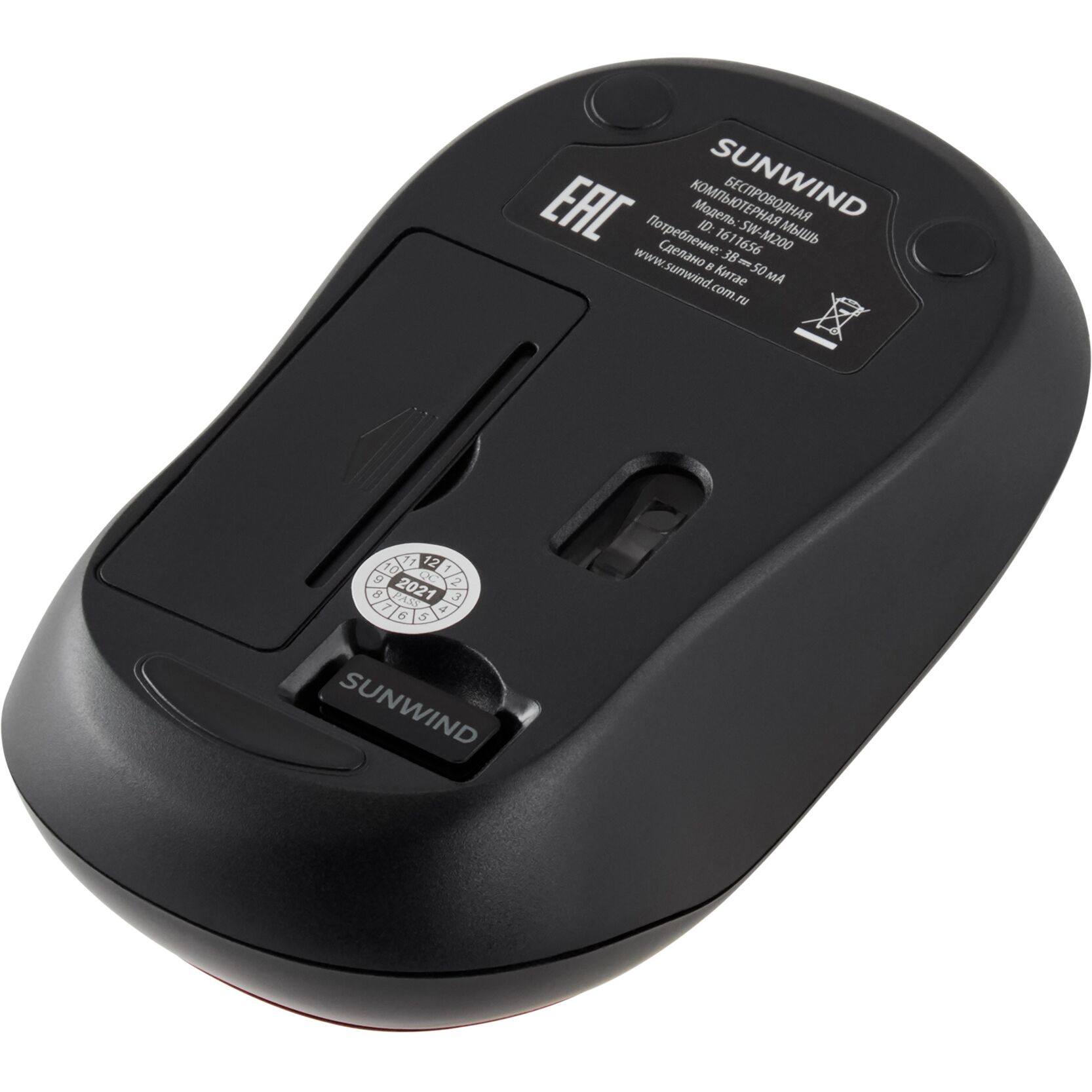 Мышь SunWind SW-M200 (1611656) оптическая беспроводная USB красный/черный