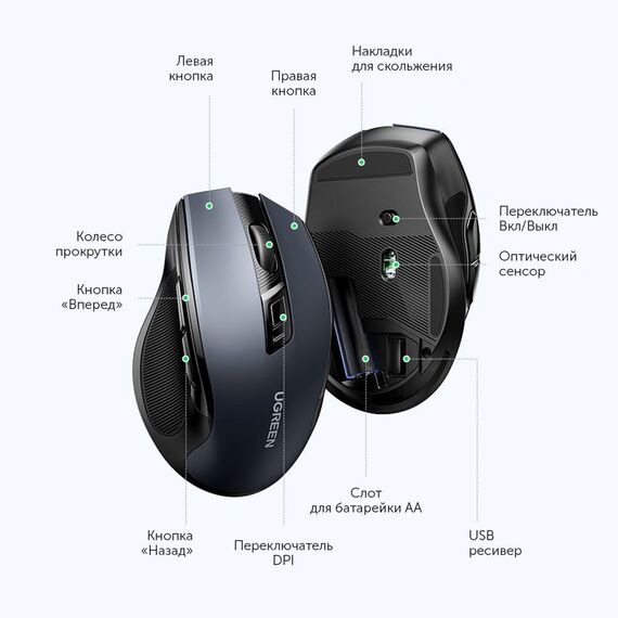 Мышь UGREEN Ergonomic Wireless Mouse MU006 (90855) Black
