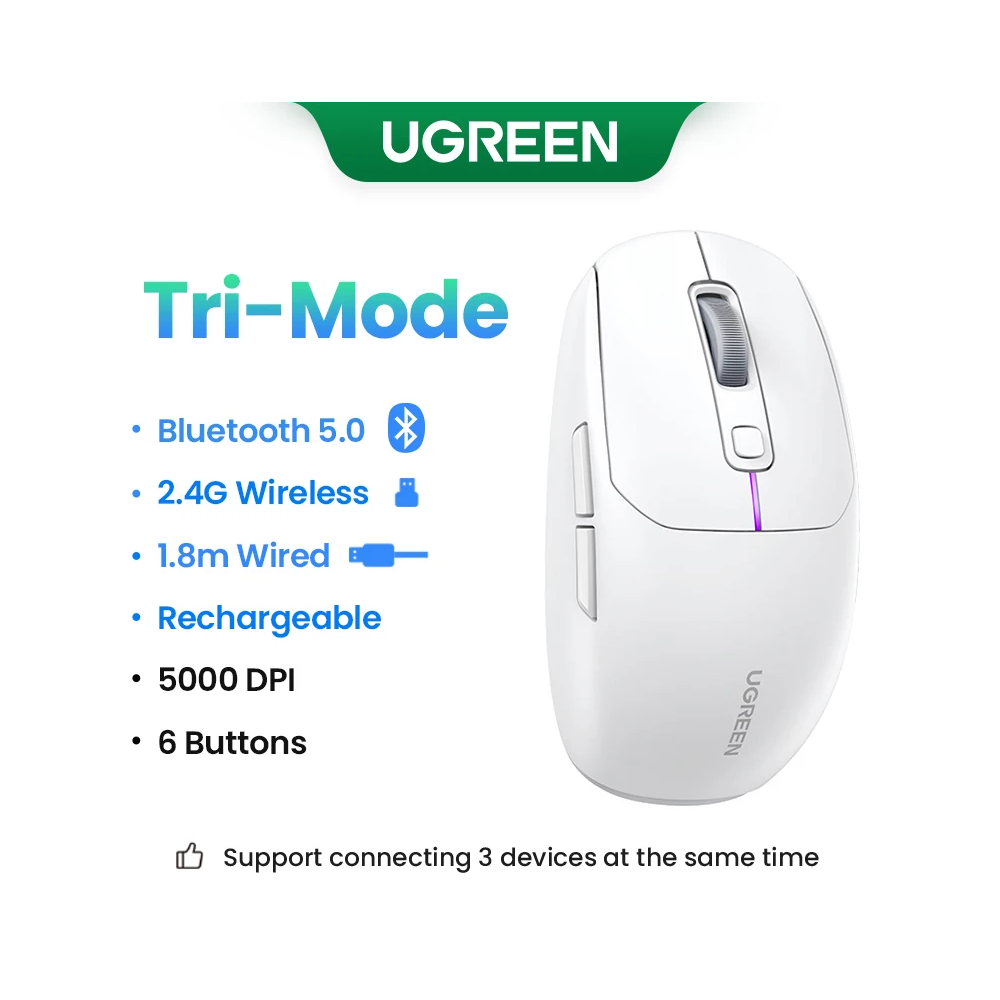 Мышь UGREEN MU103 (15629) Gaming Lightweight Wireless Mouse White