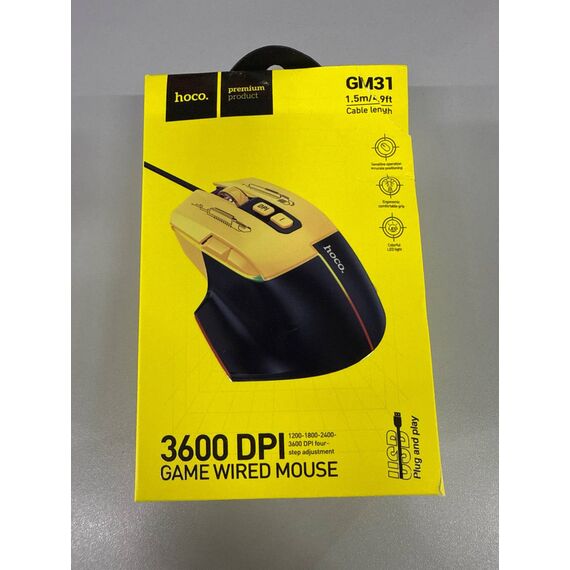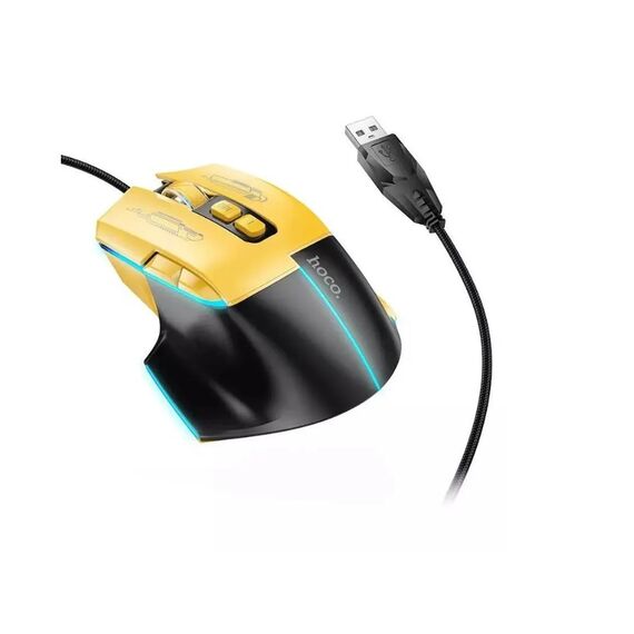 УЦ Мышь HOCO GM31 Overlord luminous gaming wired mouse черно-желтый (плохая упаковка)