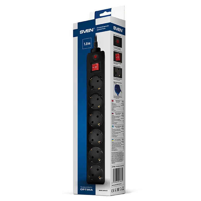 Сетевой фильтр SVEN Optima (SV-013646) 3 м (6 розеток) черный
