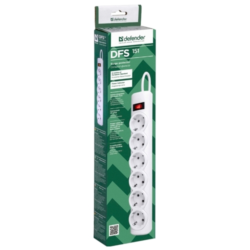 Фильтр-удлинитель сетевой 6 розеток 1.8м DEFENDER DFS 151 белый