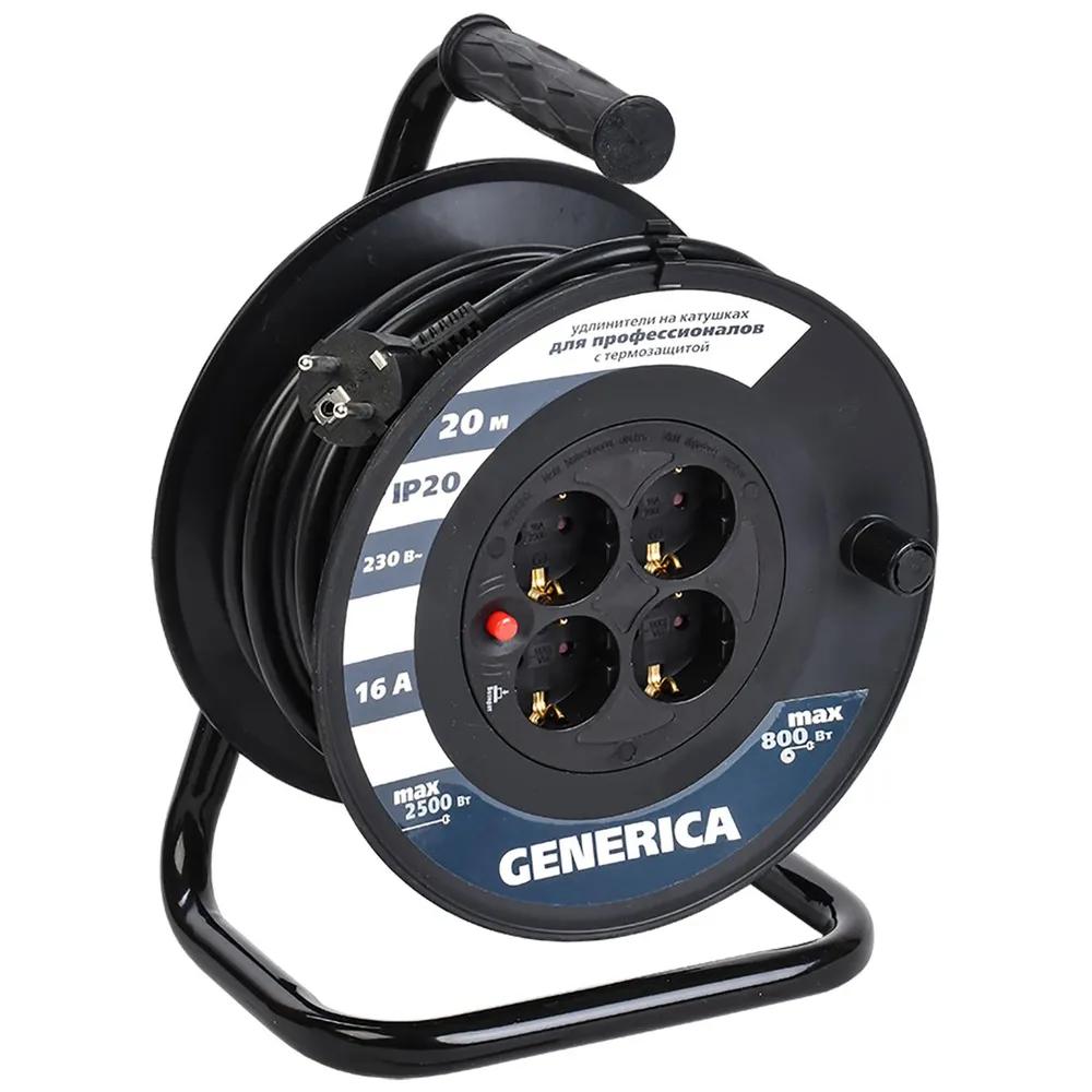 Катушка GENERICA УК20 (WKP20-16-04-20-G) с т/з 4 места 2P+PE/20м 3х1,5мм2