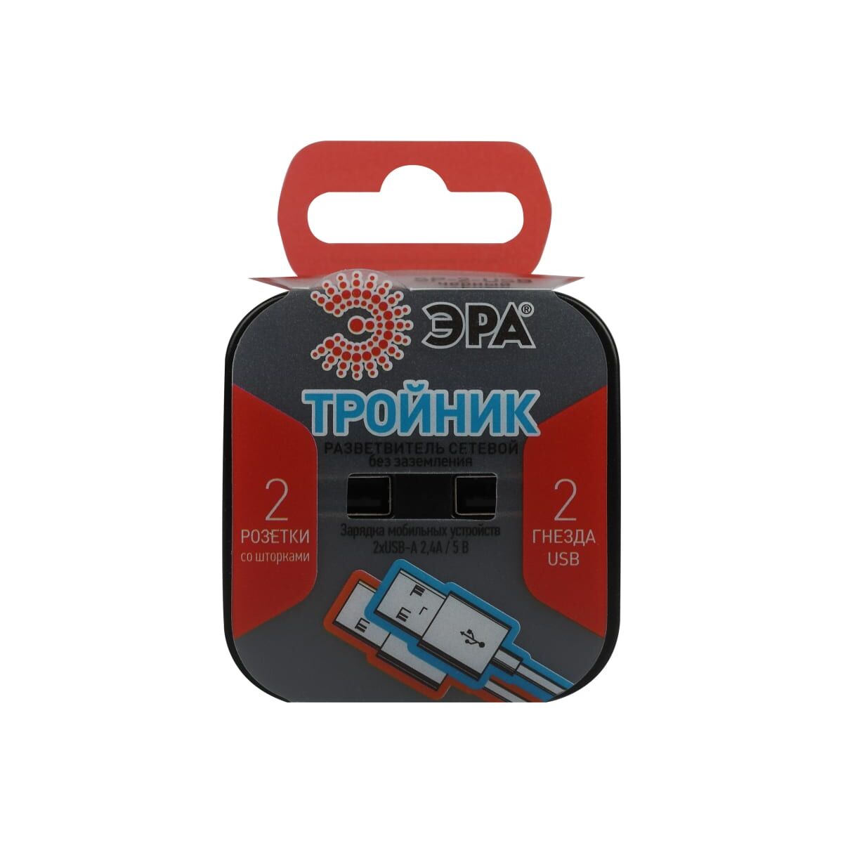 Разветвитель электрический ЭРА SP-2-USB-B (Б0049535) на 2 розетки 10А черный