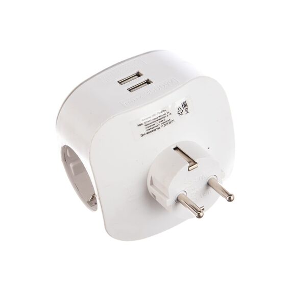 Тройник ЭРА SP-3e-USB-2A 3гн 220V + 2xUSB 2000mA, c заземлением, белый Б0015243 с 3-мя розетками и 2-мя USB гнездами для зарядки портативных устройств. Идеален для зарядки мобильных телефонов и планшетов. Незаменим с собой в дороге. Особенно актуален когда в помещении мало источников подключения - можно из одной розетки сделать три и при этом ещё заряжать 2 устройства одновременно через USB. Максимальная мощность USB разъемов: 2100 мА.