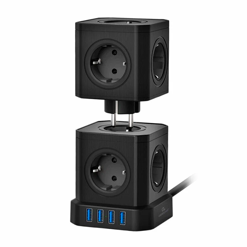 Сетевой фильтр Cablexpert Tower TWR-9-U4-B-2 черный