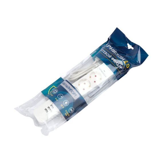 Сетевой фильтр Гарнизон EPS-4-U3-W-2 белый, 4 розетки 2м