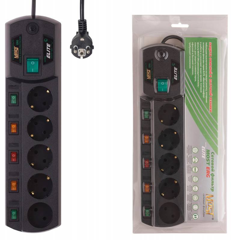 Сетевой фильтр Most ERG 2м (5 розеток) черный