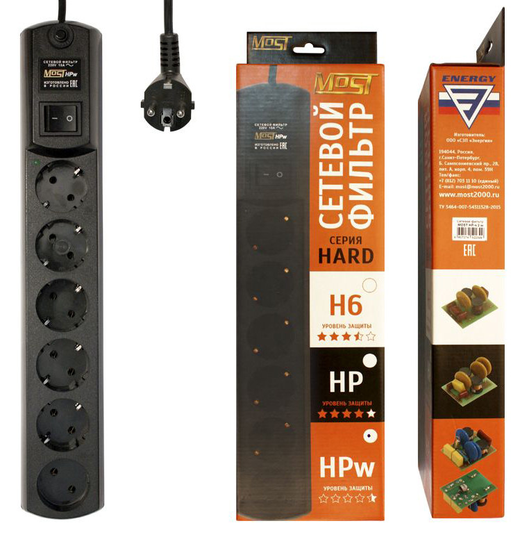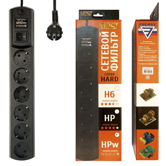 Сетевой фильтр Most HPw 2м (6 розеток) черный