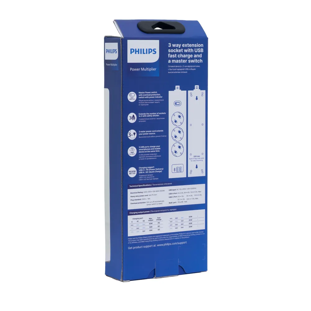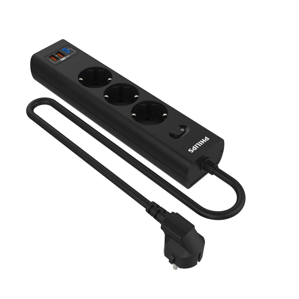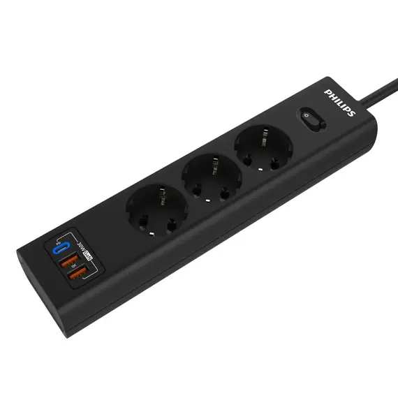 Сетевой фильтр удлинитель Philips CHP8236BB/51 представляет собой удобное устройство, которое позволяет подключать несколько устройств к одной розетке. Этот пилот удлинитель оснащен 3 розетками и 2 USB-А, а также одним портом Type-C, что обеспечивает возможность подключения различных электронных устройств, можно использовать как фильтр для компьютера, а также хорошо подойдет как удлинитель для гирлянды, поэтому он является многофункциональным. Длина разветвителя электрического составляет 3 метра, что позволяет свободно располагать подключенные устройства в нужном месте. Важным преимуществом розетки с выключателем является наличие заземления, которое обеспечивает безопасность и защиту от перегрузок. Тройник с usb 3.0 обладает многофункциональностью, позволяя подключать не только электрические приборы, но и заряжать устройства с помощью USB-портов. Сетевой фильтр Philips обладает передовой технологией быстрой зарядки QC 3.0 - Смартфон непрерывно посылает зарядному устройству информацию о состоянии аккумулятора. На основании этой информации блок питания регулирует выходную мощность, изменяя напряжение и силу тока. Также, благодаря новейшей технологии GaN, этот удлинитель предлагает высокую мощность, занимая при этом минимум места. Сетевые зарядные устройства, в которых используется технология GaN (нитрид галлия), потребляют меньше электрических компонентов и обладают лучшей теплоотдачей. Черный цвет разветвителя с type c придает ему стильный и современный вид, а прочный корпус обеспечивает долговечность и надежность использования. Этот удлинитель силовой идеально подходит для использования дома или в офисе, где требуется подключение и зарядка сразу нескольких устройств. Идеально подойдет для использования дома, гаража, склада, офиса.