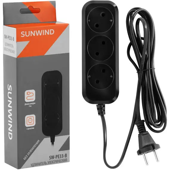 Сетевой удлинитель SunWind SW-PE33-B 3м 3 розетки черный