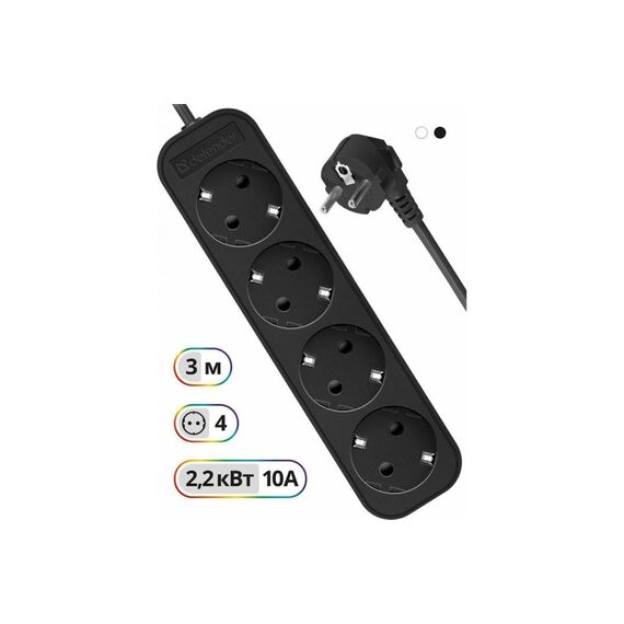 Удлинитель Defender M430 (99326) 3.0 м, 4 розетки, черный