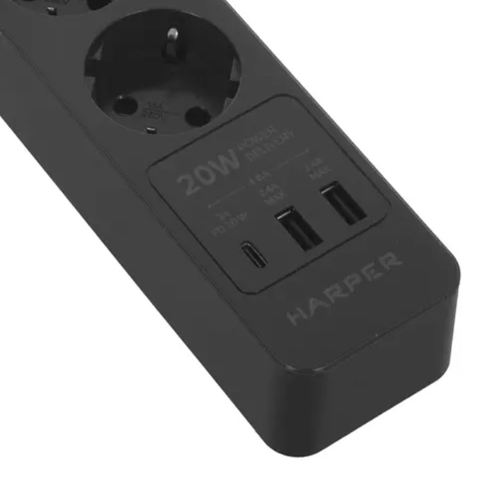 Удлинитель с USB зарядкой HARPER UCH-430 PD3.0 Black