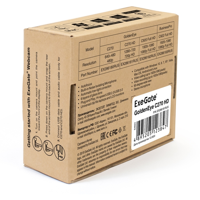 Веб-камера EXEGATE (286181) GoldenEye C270 HD