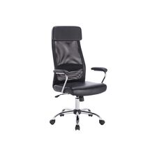 Характеристики Материал обивки: кожзам/экокожа/ткань/сетка Цвет обивки: черный Максимальная нагрузка: до 110 кг Механизм качания: да Тип механизма: "топ-ган" качание с регулировкой под вес и фиксацией в 1 положении Сетка в спинке : да Крестовина (пятилучие): хромированный металл...