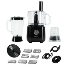 Тип Кухонный комбайн Тип управления Механическое Входное напряжение (В) 220-240 Мощность (Вт) 1000 Объем (л) Чаша - 1.2; Блендер - 1.5; Кофемолка - 0.35 Материал Корпус - пластик, чаша комбайна - пластик, чаша кофемолки - пластик, чаша блендера - стекло, лезвия - нержавеющая сталь,...