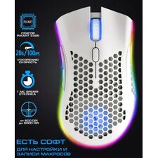 Цвет товара:белый Тип:мышь Тип сенсора мыши:оптический светодиодный Тип подключения:проводной Интерфейс подключения:USB Type A Модель сенсора:Pixart 3327 Разрешение оптического сенсора:6200 dpi Вес:115 г Дизайн:для правой руки Встроенные опции:колесо прокрутки Особенности:подсветка...