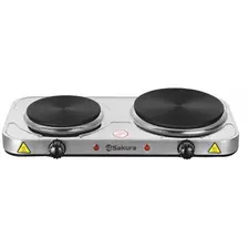 Бренд Sakura Тип плита электрическая Тип управления механический Материал корпуса металл Покрытие корпуса эмаль Тип нагревательного элемента спираль Мощность 2000 Вт Количество комфорок 2 Цвет черный Диаметр конфорок 145 мм + 145 мм Длина сетевого кабеля 0.9 м Индикатор...