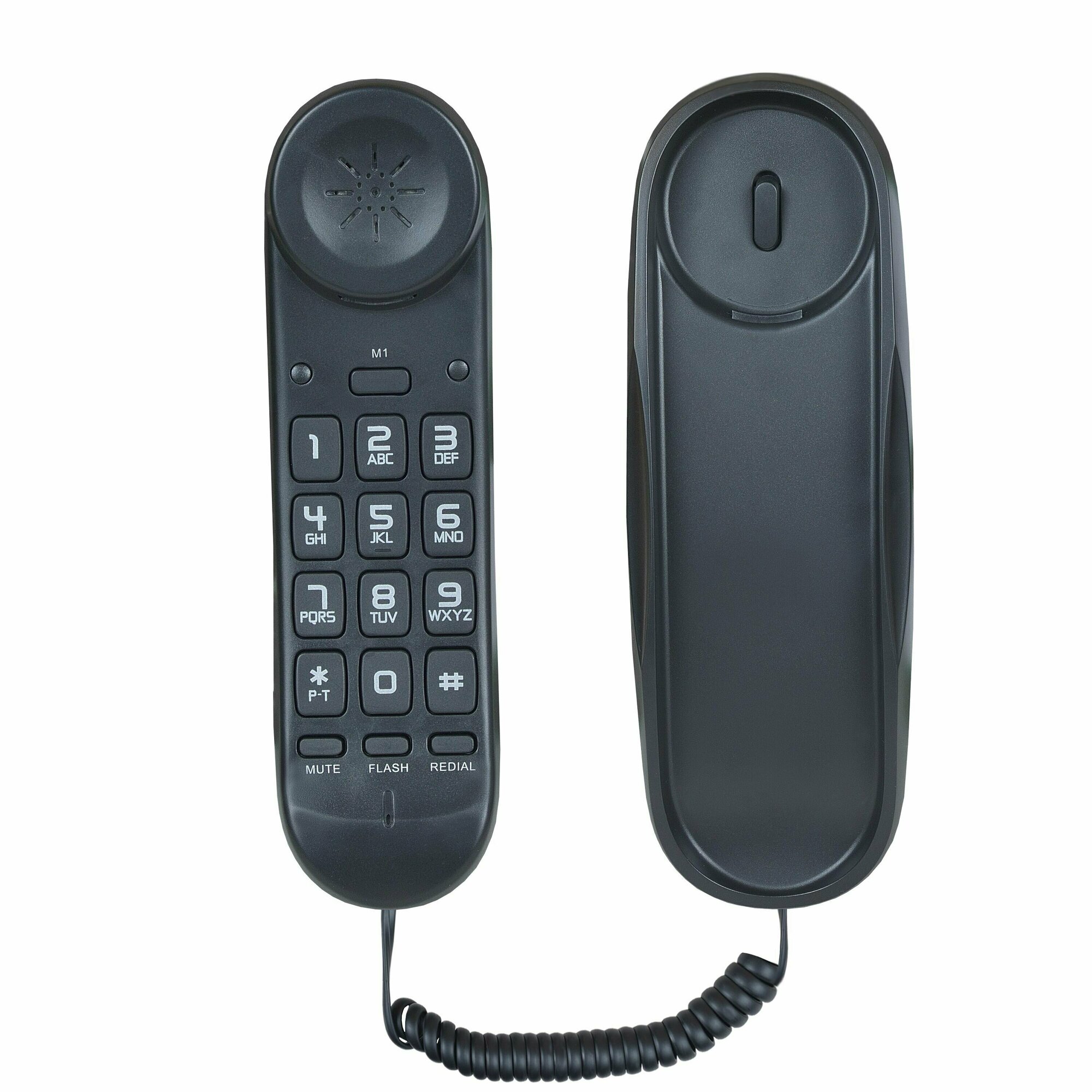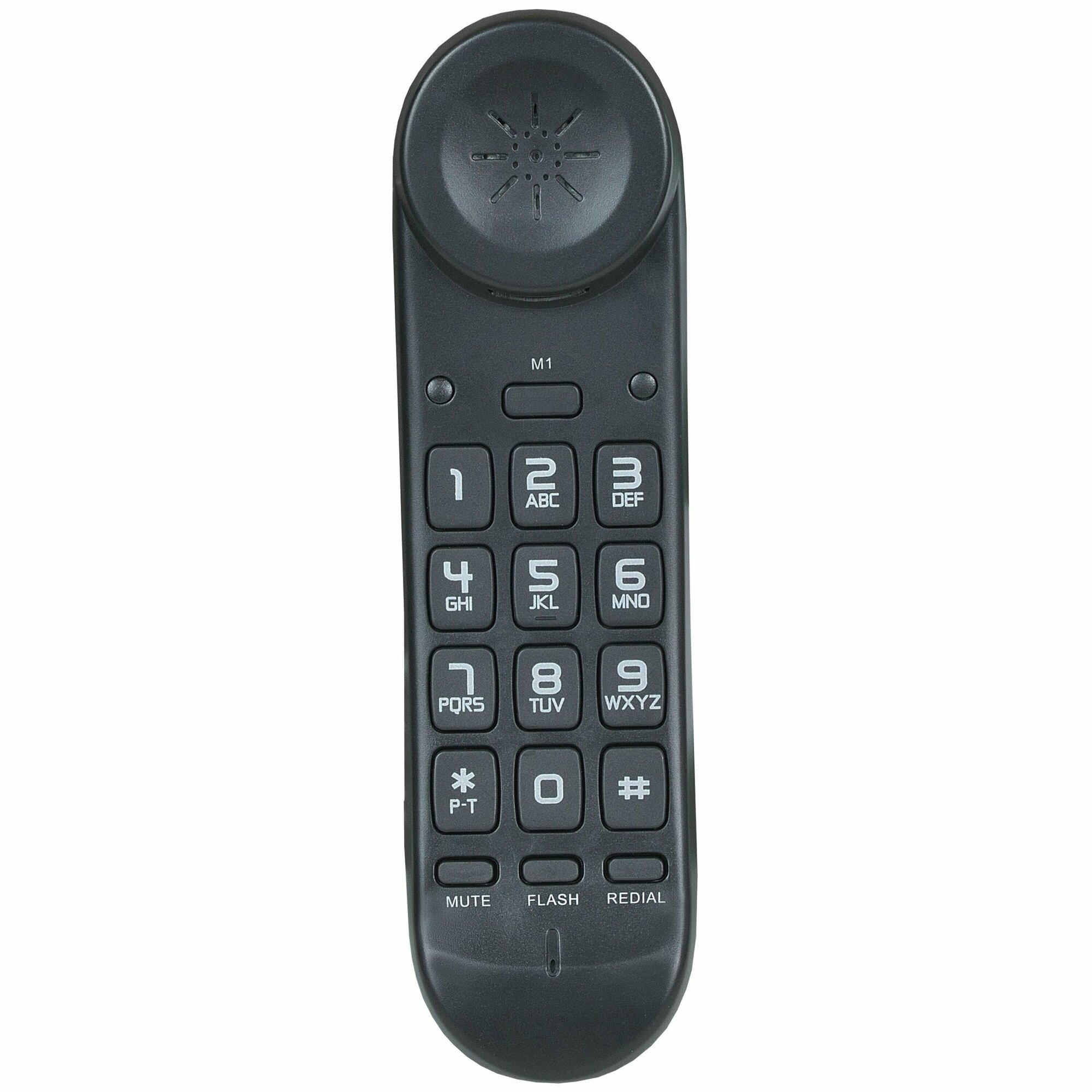 Компактный проводной аналоговый телефон, выполненный в прочном пластиковом корпусе чёрного цвета. Номеронабиратель и все органы управления располагаются на трубке. Яркий индикатор вызова на тыльной стороне трубки оповещает о входящем вызове. Прекрасно держится на стене, трубка хорошо крепится в ложементе. Не выпадает. В телефоне есть энергонезависимая память, которая сохраняет данные даже при отключении питания. Поддерживает тональный и импульсный набор. Регулируемая громкость мелодии вызова. Используется в основном, как гостиничный телефон или телефон в холле.- Временное отключение микрофона.