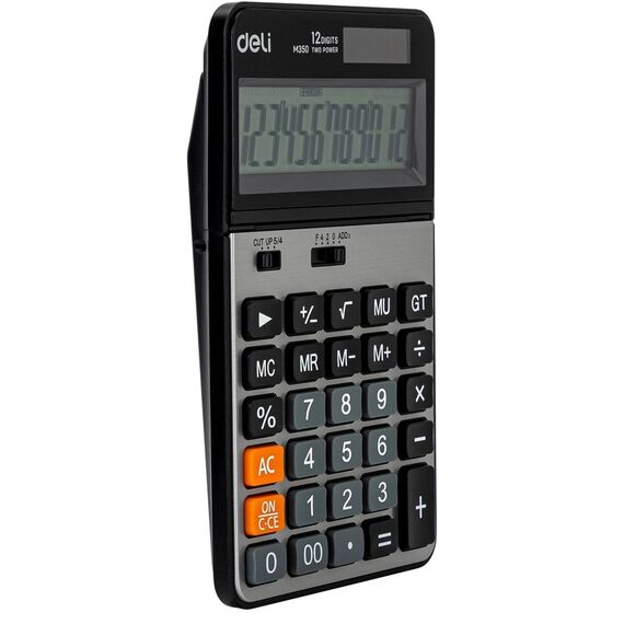 Калькулятор настольный Deli, EM350, 12 символов, 2 источника питания, металлический, серебристый