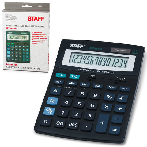 Простой в использовании и точный в расчётах настольный калькулятор STAFF STF-888-14 выполняет все необходимые вычисления на работе и дома. Кнопки нажимаются легко и тихо, позволяя работать с максимальным комфортом.