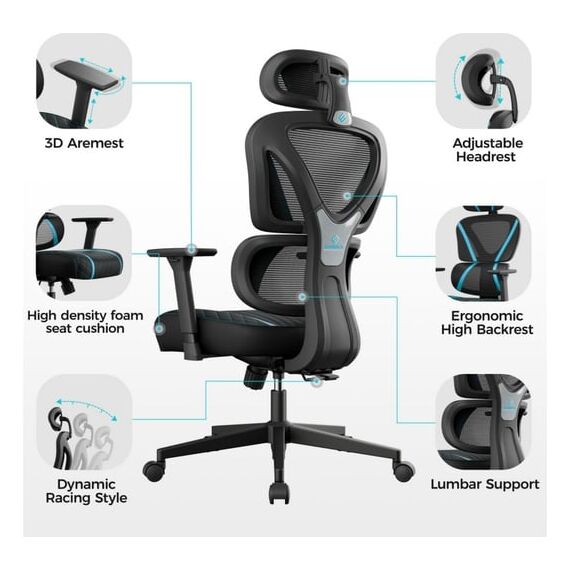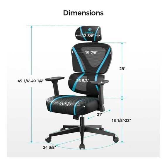 Кресло игровое EUREKA Norn ERK-GC06-BU на колесиках, сетка, черно-синий