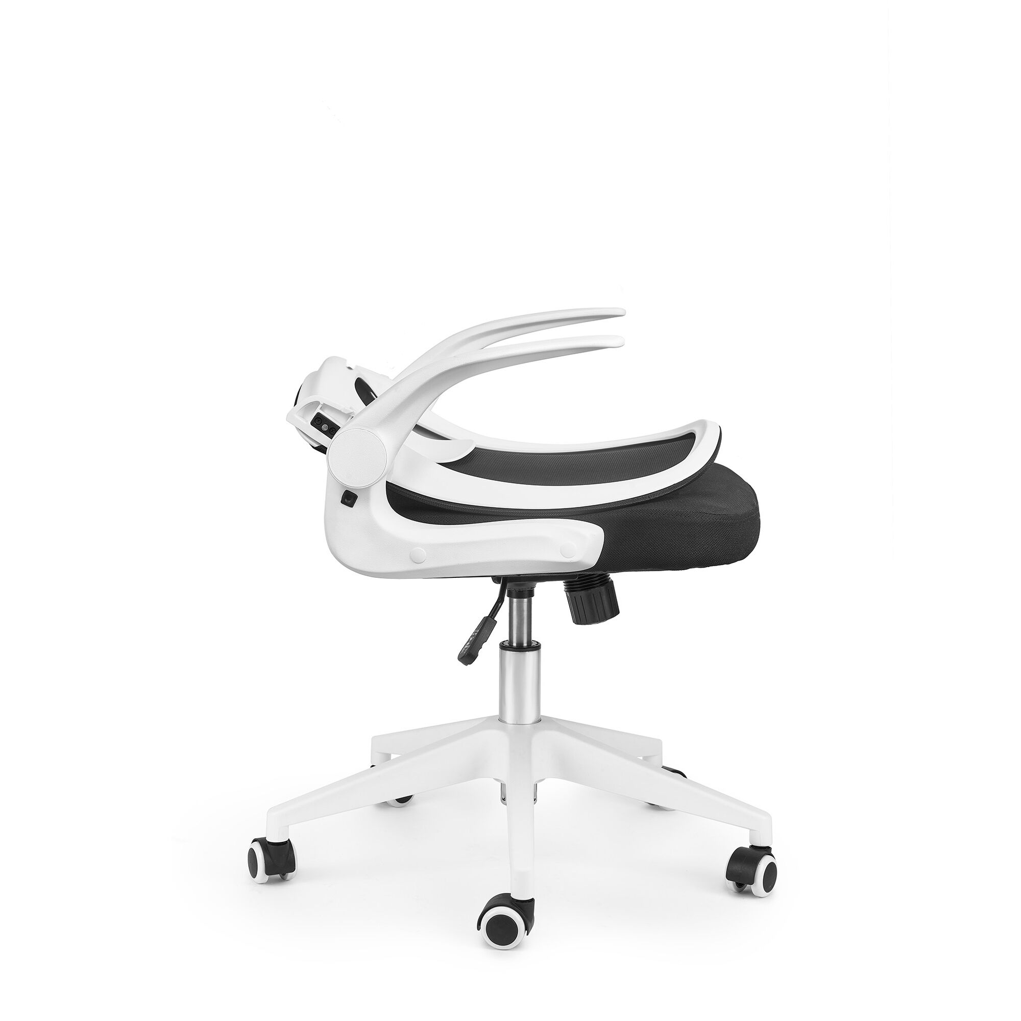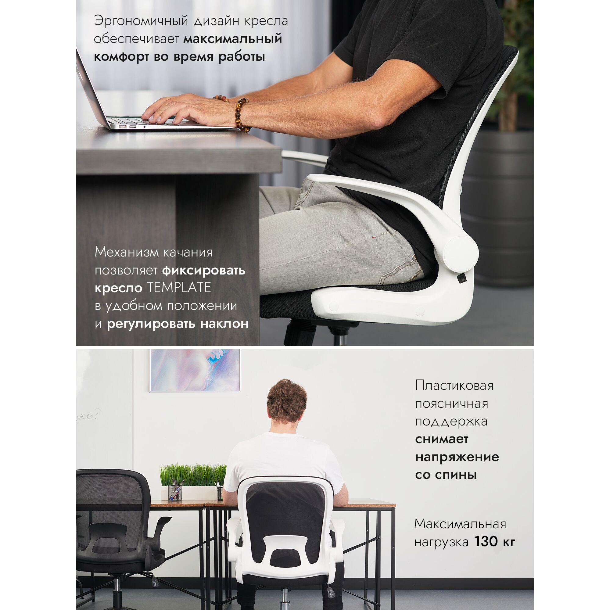 Loftyhome Template VC6007 black/white – удобное и элегантное кресло чёрного цвета с белыми подлокотниками, которое отлично подойдёт не только для обустройства офисного интерьера, но и станет хорошим дополнением домашнего кабинета или детской комнаты. Складная сетчатая спинка пропускает воздух и обеспечивает комфортную поддержку спины. Обивка сиденья выполнена из прочной износостойкой мебельной ткани. Есть возможность регулировать угол наклона пластиковых подлокотников. Сиденье регулируется по высоте, механизм регулировки надёжен и обладает высоким запасом прочности. В основе конструкции крепкая пластиковая крестовина белого цвета, которая выгодно контрастирует с чёрным цветом сиденья и спинки. Кресло выдерживает нагрузку до 130 килограммов. Пластиковые ролики подходят для использования на паркете и ламинате.